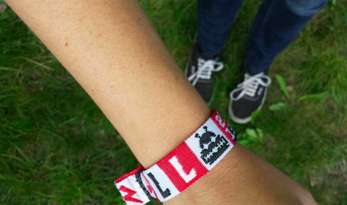 Je ziet ‘m hierboven: het polsbandje van 2013. Roodwit geblokt, met ook zwarte elementen. Hij zit om de pols van de eerste bezoekers!